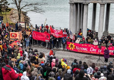 Photo via the United American Indians of New England of the National Day of Mourning Gathering at Cole’s Hill. Learn more about their work, and join in this year’s gathering, at http://www.uaine.org/.…